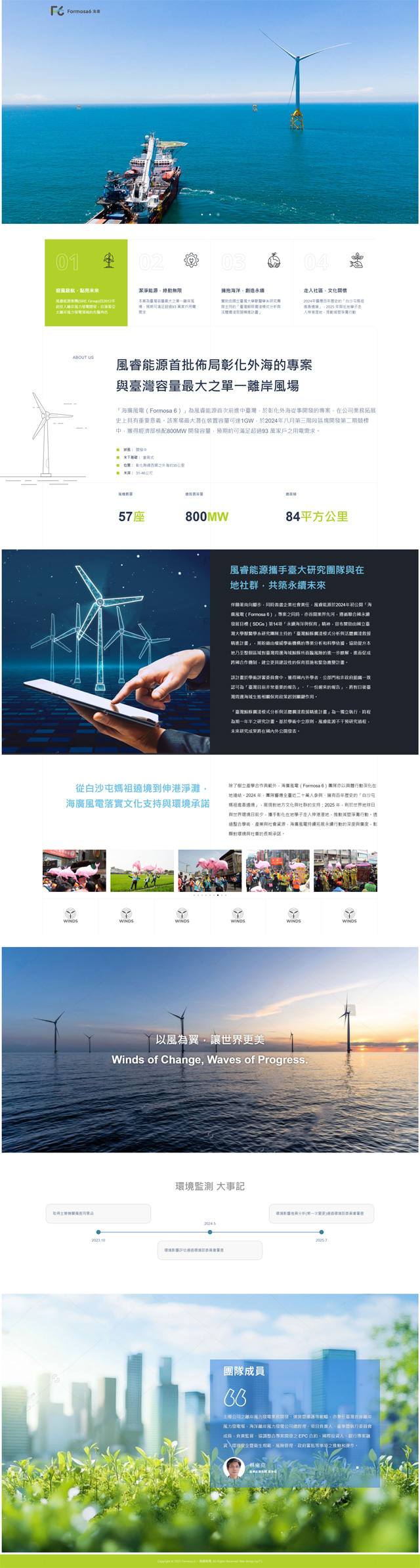 • 海廣風電(Formosa 6)為風睿能源首次前進中臺灣,於彰化外海從事開發的專案,在公司業務拓展史上具有重要意義